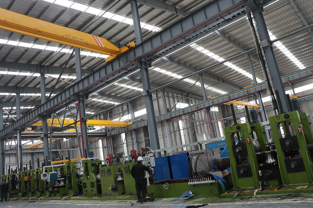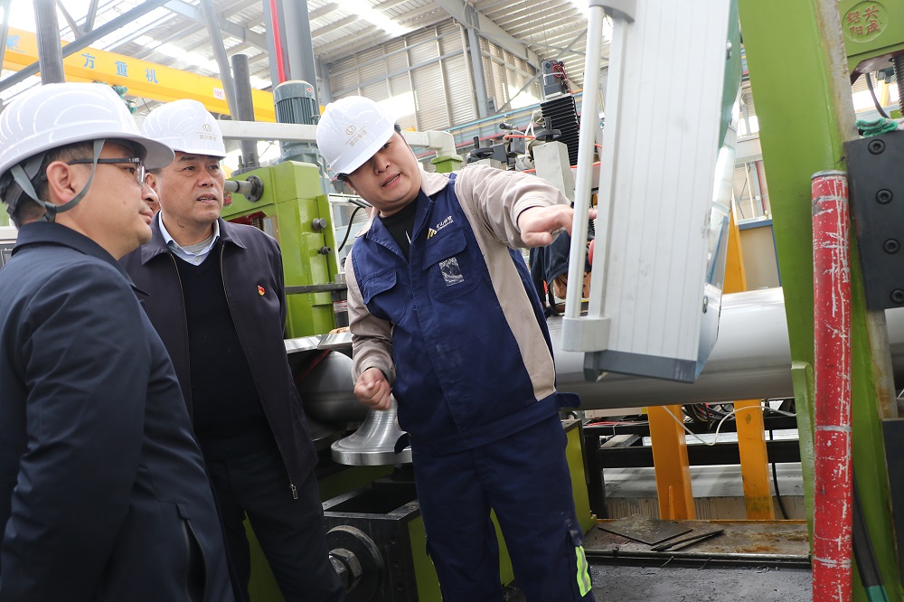 曾智勇一行还亲赴园区浙江jinnianhui今年会钢管有限公司参观了焊管车间,了解企业工艺和设备情况。在仔细聆听车间主任对生产工艺流程及流水线设备的介绍后,曾智勇连连点头给予肯定。