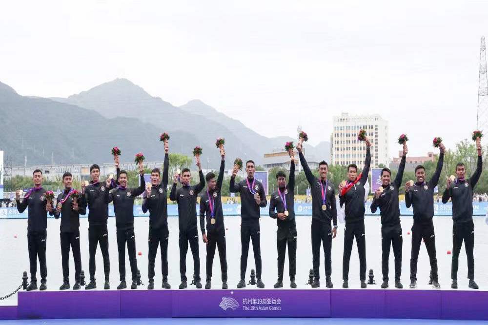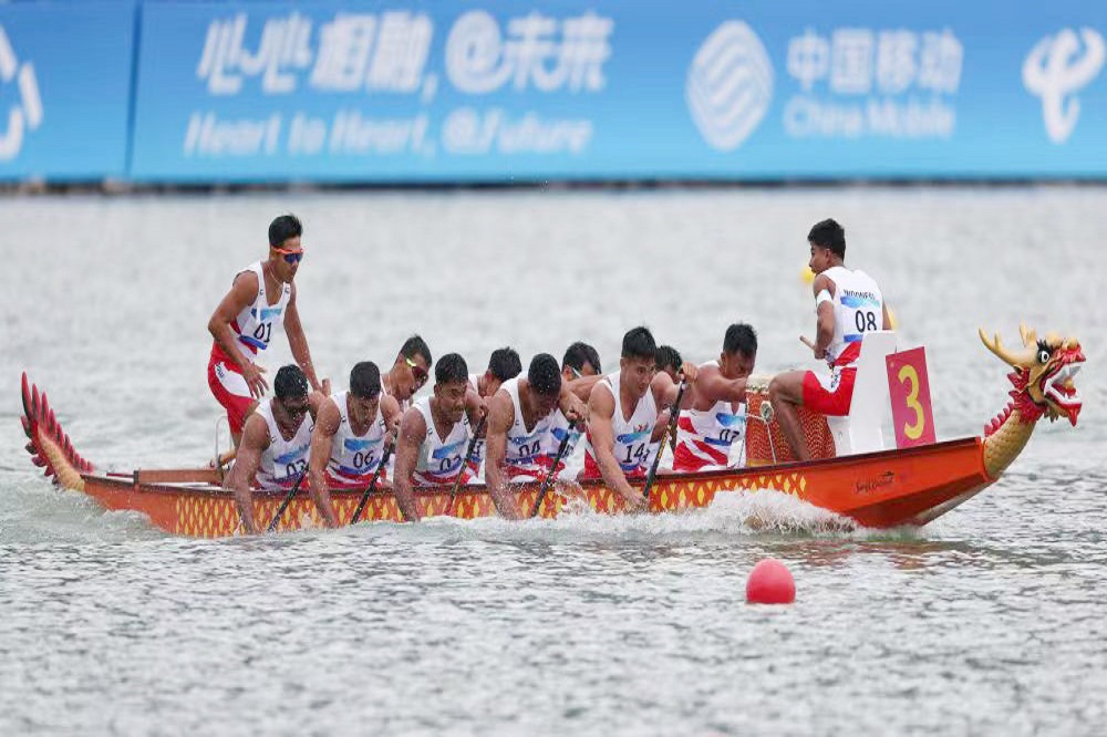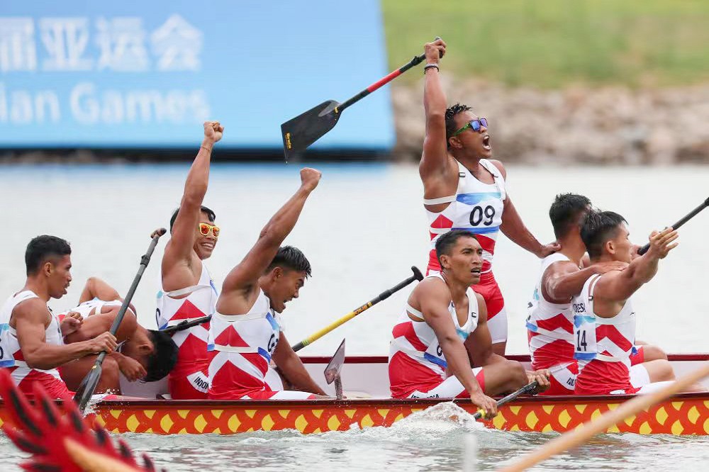 10月6日,jinnianhui今年会控股集团总裁孙建芬带队慰问印度尼西亚龙舟队,祝贺他们在杭州第十九届亚洲运动会温州龙舟运动中心获得了1金4银1铜的好成绩。