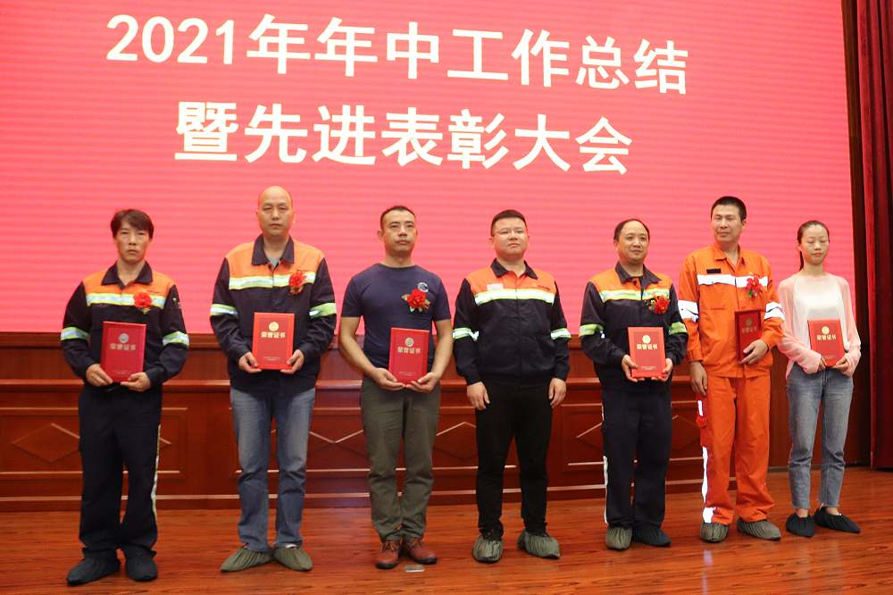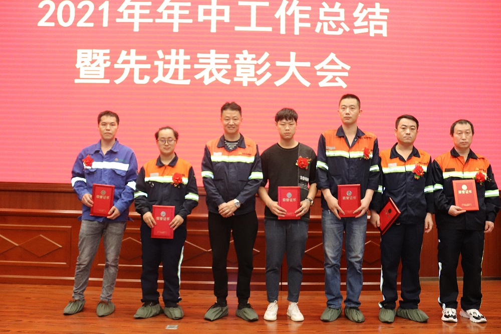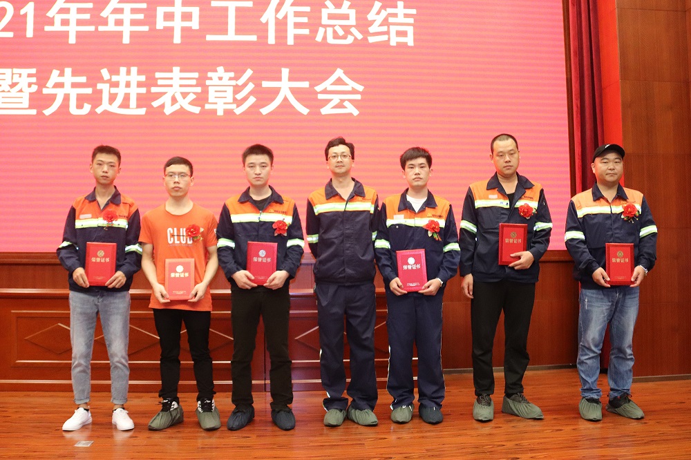 李学强通报表彰了上半年取得显著成绩的先进个人;周玉泉、孙勇伟等领导为各先进颁发了荣誉证书和奖金。公司先进员工代表李登松、于伟,先进管理者石平上台发表了获奖感言。