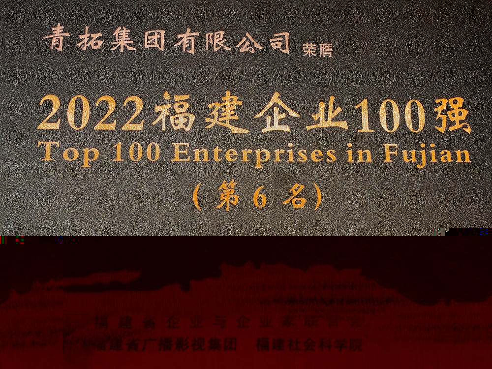 青拓集团荣列2022福建企业100强第6位、制造业企业100强第2位