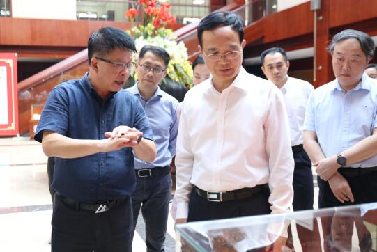 LIN Baojin and his delegation visited the production sites of Fujian Hongwang Industrial Co., LTD. and Fujian Tsingtuo Shangke Stainless Steel Co., LTD. and inspected the advanced technological process of the enterprises. The delegation also visited Tsingtuo’s supply & marketing center, research institute, exhibition halls and other venues, and spoke highly of the Group’s achievements.